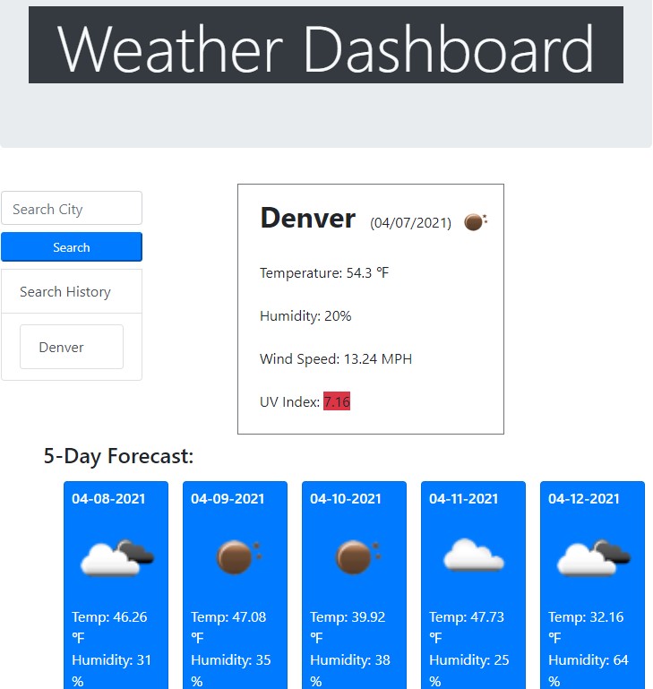 This is a simple weather dashboard application. You are able to enter a city to receive current and future weather information.