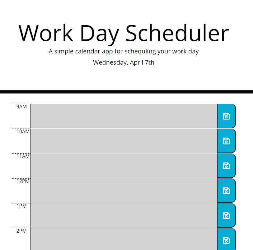 This is a work day scheduler that allows you to enter activities/tasks and it saves them to local storage.